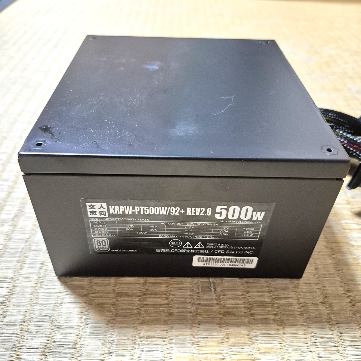 - 電源 玄人志向 KRPW-PT500W/92+ REV2.0 500W 80PLUS PLATINUM 60s25-1484-3