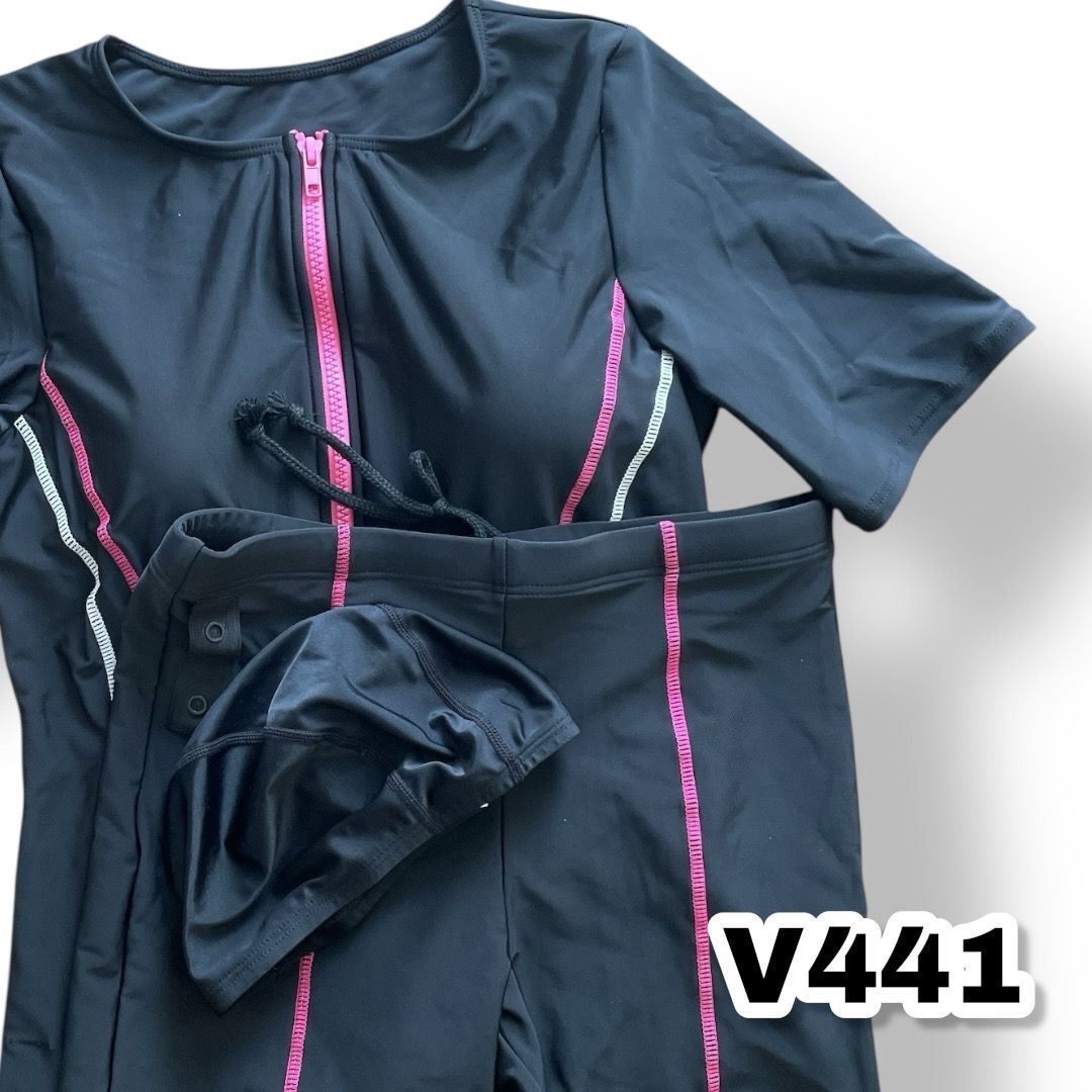 - [ZAIDEA] フィットネス セパレート 半袖 スイムキャップ 付き 3点セット めくれ防止 UVカット (L, ブラック・ピンク) 管理V441