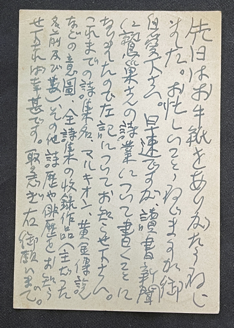 - ◆加藤郁乎 肉筆書簡17◆昭和46年5月葉書 詩人/俳人/俳諧評論家/早稲田大学文学部演劇科卒/澁澤龍彦らと交流 詩人・鷲巣繁男宛 手紙