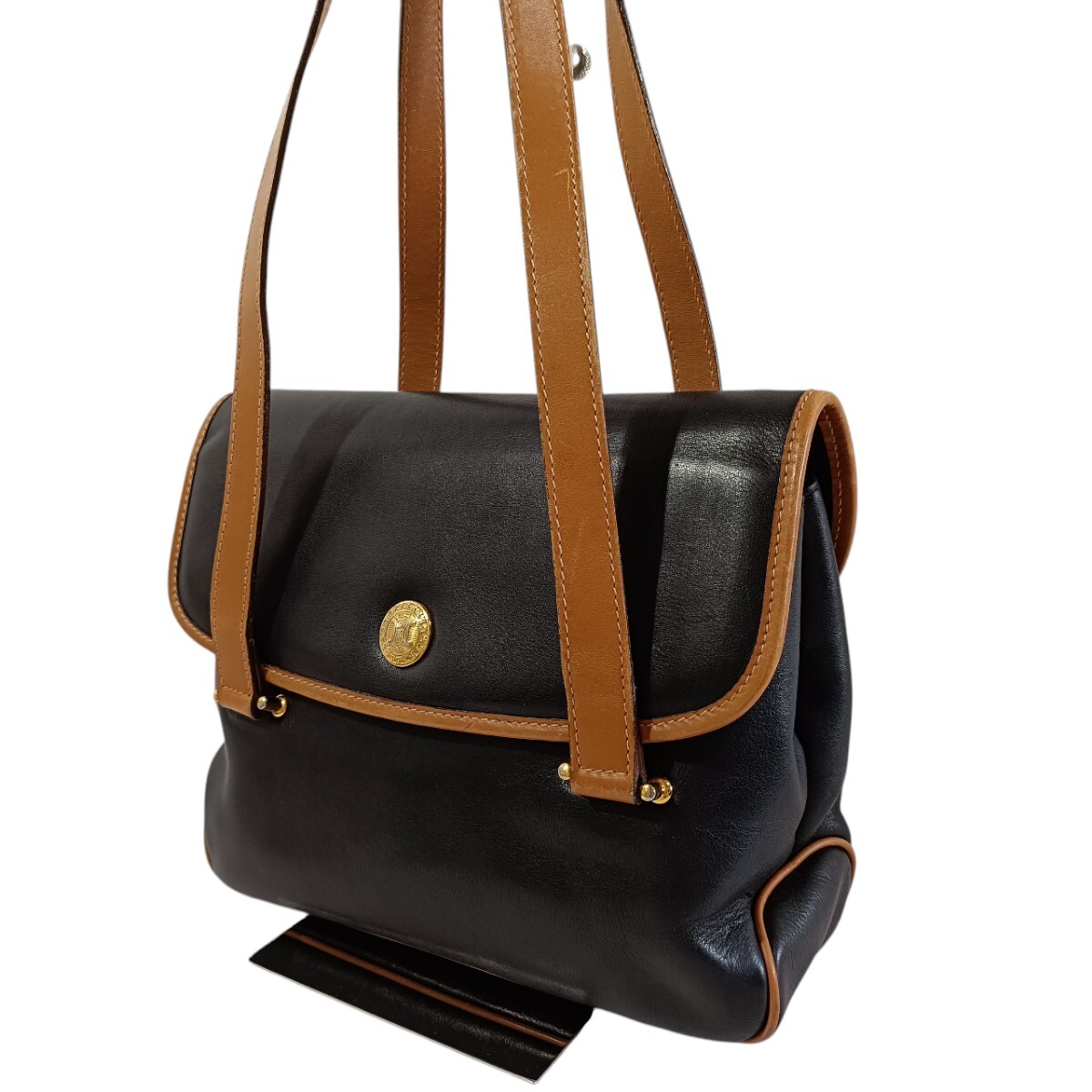 - 正規品 セリーヌ CELINE トートバッグ マカダム 黒 ブラック レザー 革 ハンドバッグ 肩掛け ゴールド金具 冠婚葬祭 フォーマル レトロ