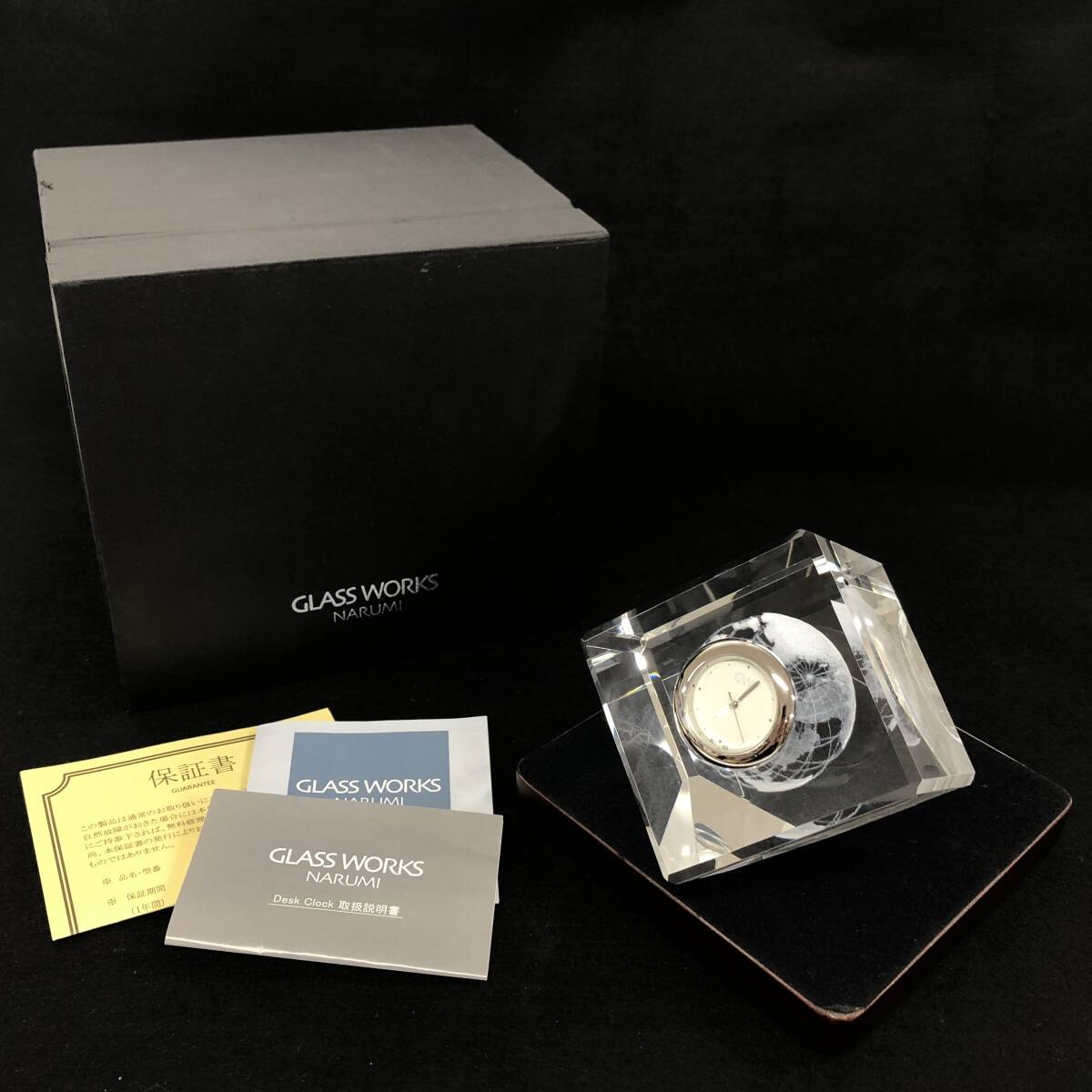 > NARUMI GLASS WORKS 置き時計 キューブクロック 3Dアース GW1000-11055 ガラス 保証書付 箱付 スケルトンクロック 鳴海製陶株式会社 置時計