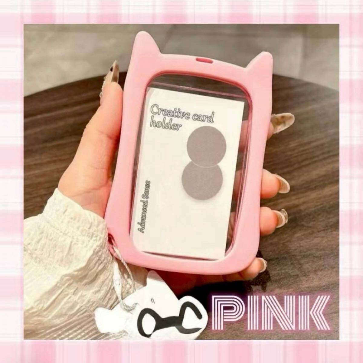 - 猫耳 トレカケース パスケース 定期入れ キーホルダー チェキ 推し活 ピンク