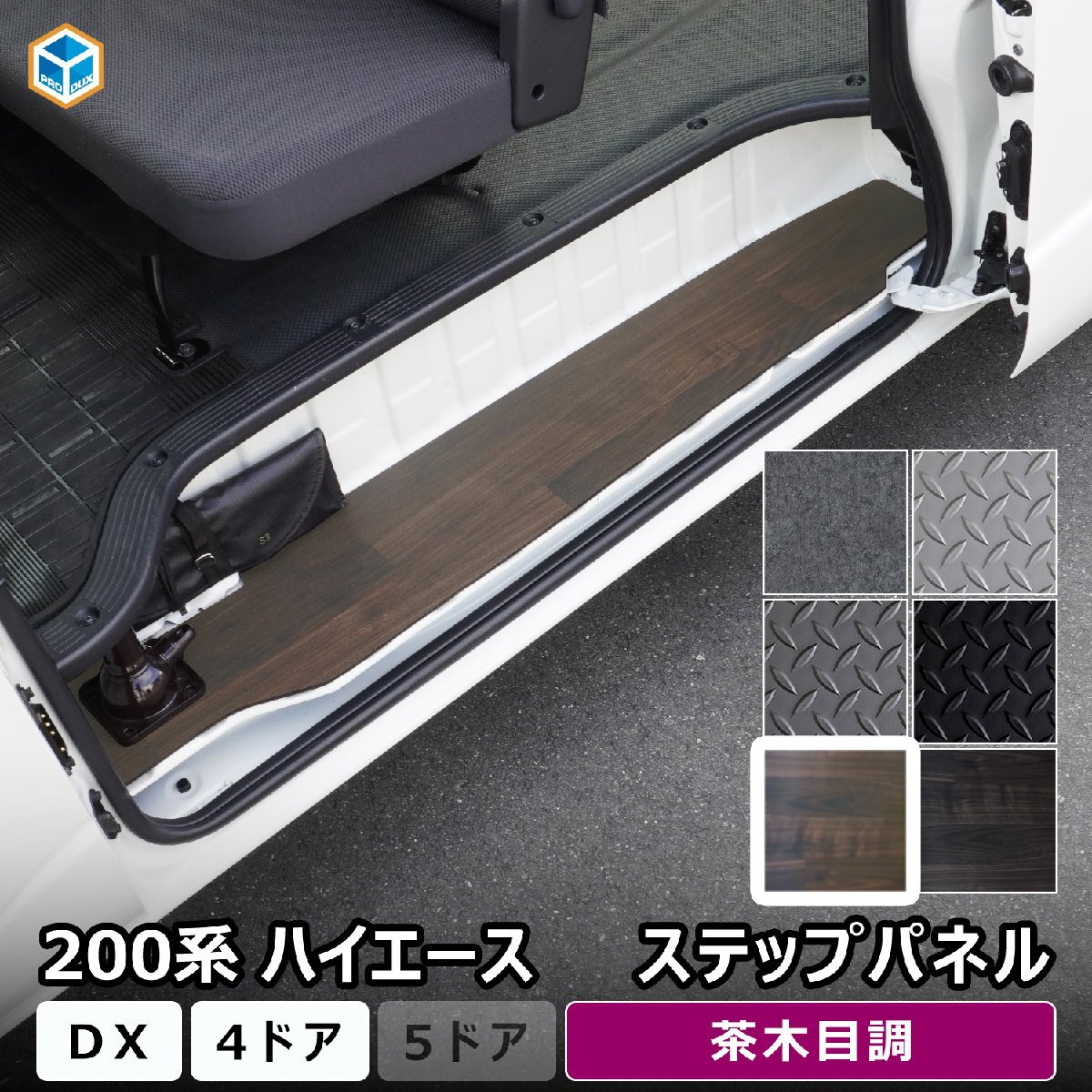 200系 ハイエース DX 標準 ワイド ステップパネル 【 4ドア車両 × 茶木目調 】| ステップボード ステップ カバー パネル カスタム パーツ