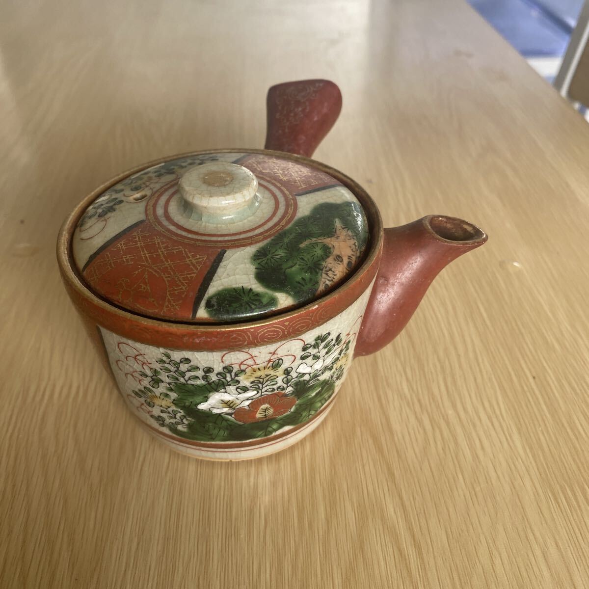 - 九谷 庄三 急須 人物 松 花紋 年代物 骨 煎茶道具 茶道具