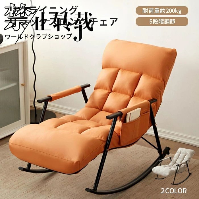 - おとななじみリクライニングチェア アウトドア,リクライニングソファーローチェア,ロッキングチェアベランダ 収納袋付き イエロー