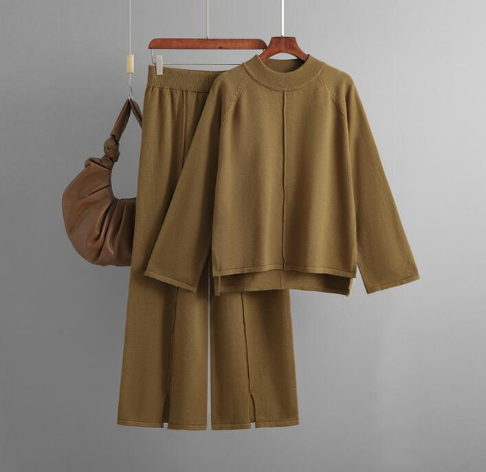 - 344 パンツスーツladiesレディース ◇ ニット素材 上質 ◇ 秋冬 厚手 ブラウン