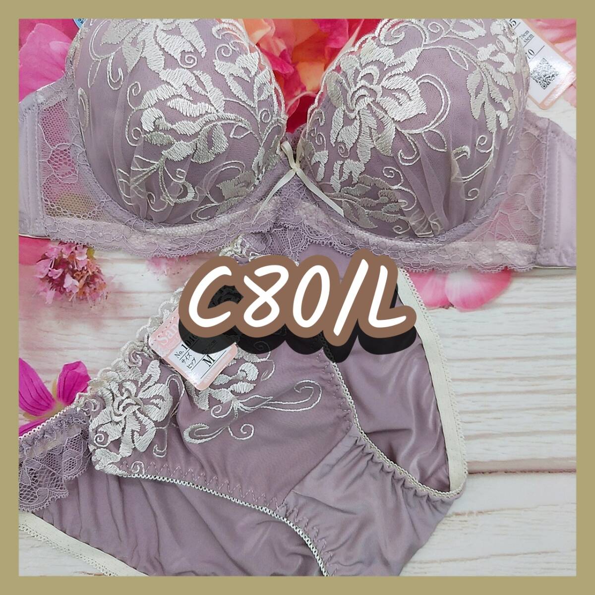 - C80023-P C80/L【新品 インナー レディース ブラ・ショーツセット C80カップ Lサイズ パープル】