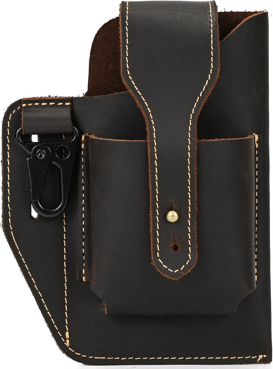 - 本革 ウエストバッグ メンズ ベルトポーチ レザー ベルトバッグ 携帯収納 2室 ウエスト鞄 小物入れ ウエストポーチ スマホポーチ