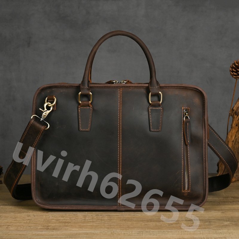 - 本革 ビジネスバッグ ショルダーバッグ 牛革 メンズバッグ 大容量 通勤鞄 15.5インチPC対応 ブリーフケース 収納豊富 出張 自立可 多機能
