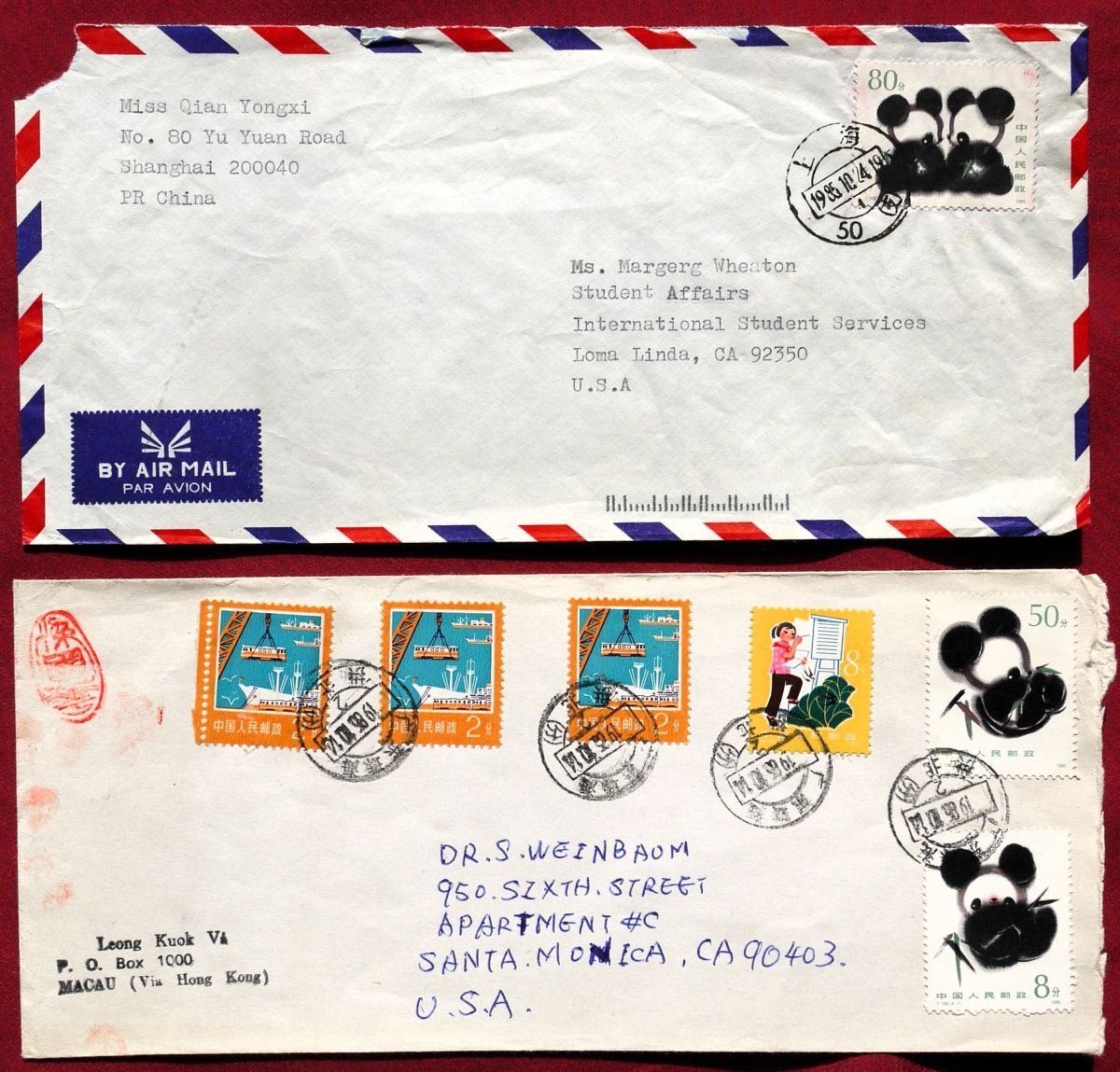 - 【新中国!!】(58) 米宛封筒エンタイア2通ロット 1985年パンダ切手貼り