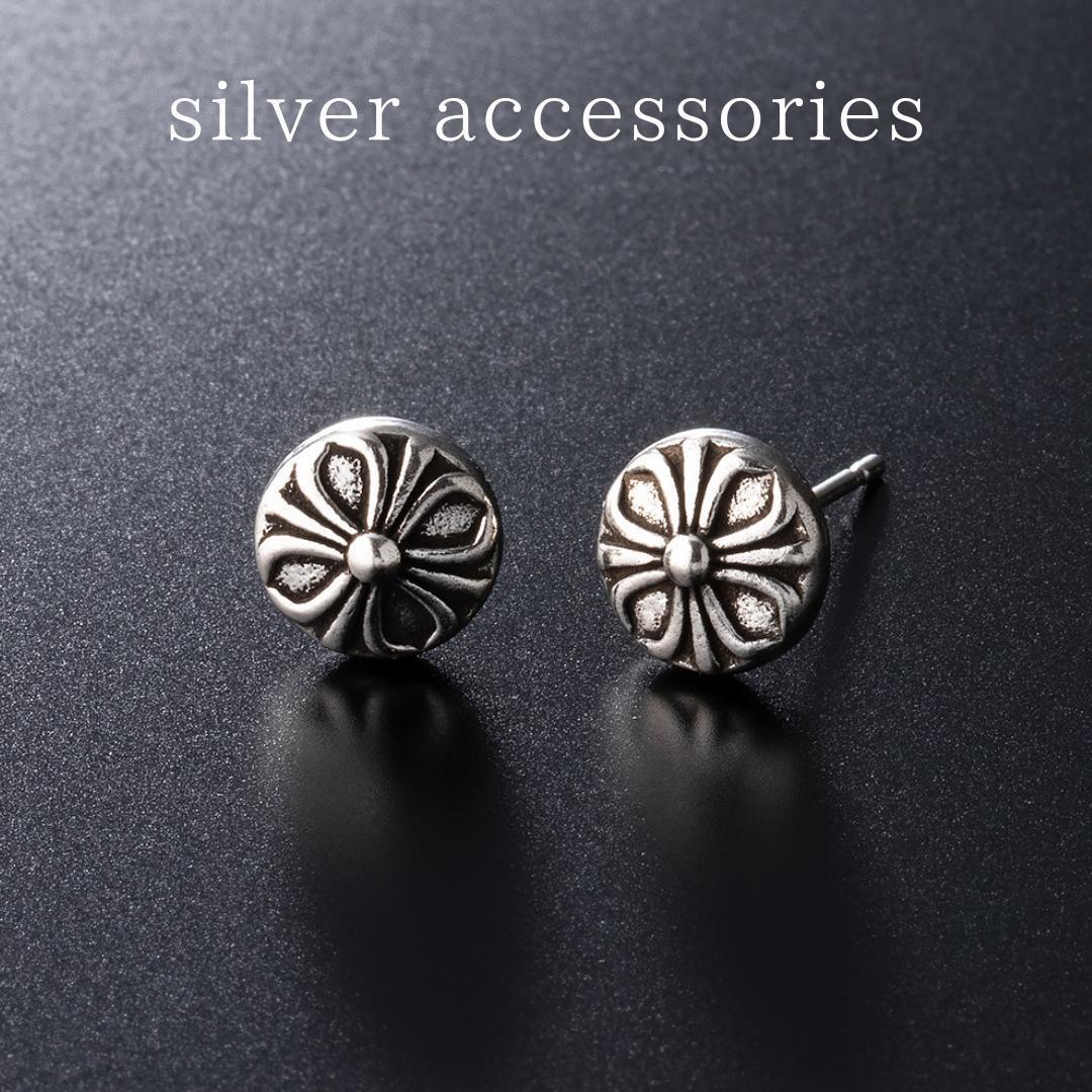 - シルバー925 ピアス クロス スタッド 丸型 ゴシック系 105