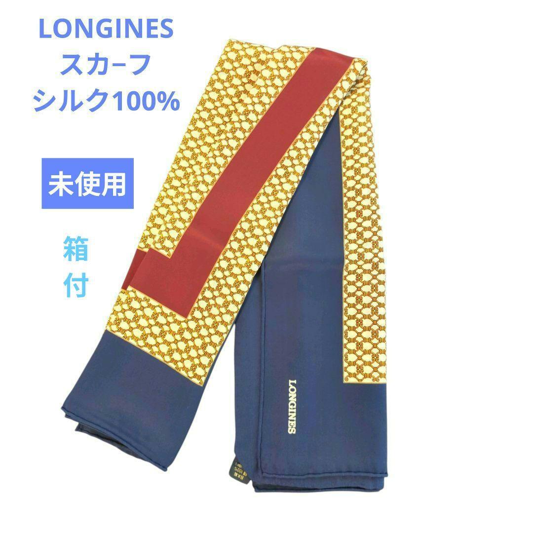 - LONGINES ロンジン シルクスカーフ ネイビー×ボルドー【未使用】