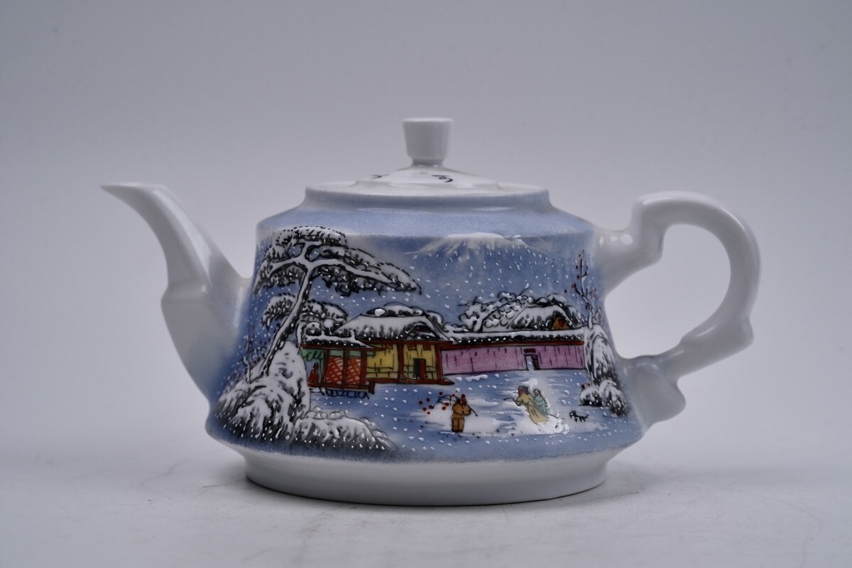 - 中国古美術 景徳鎮芸術磁場 1961年製 雪景図 煎茶道具 急須 水注
