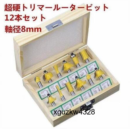 - 工具超硬 電動 トリマー ルーター ビット 面取り 溝切り 大工 軸径8mm 12本セット