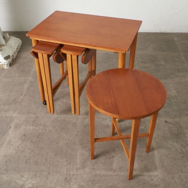 - IZ89175N★レア POUL HUNDEVAD ヴィンテージ ネストテーブル チーク Novy Domov 1960's 北欧 デンマーク サイドテーブル コーヒーテーブル