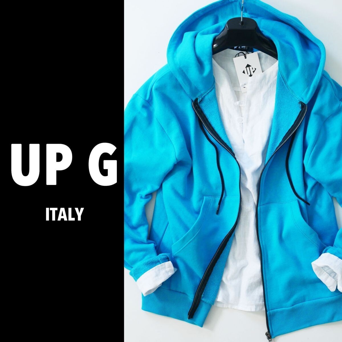 > 秋到来「先行」SALE! ●dp334●M●イタリアの街着ブランド●新色コットン100%ジップアップデザインパーカー●ディープターコイズ系