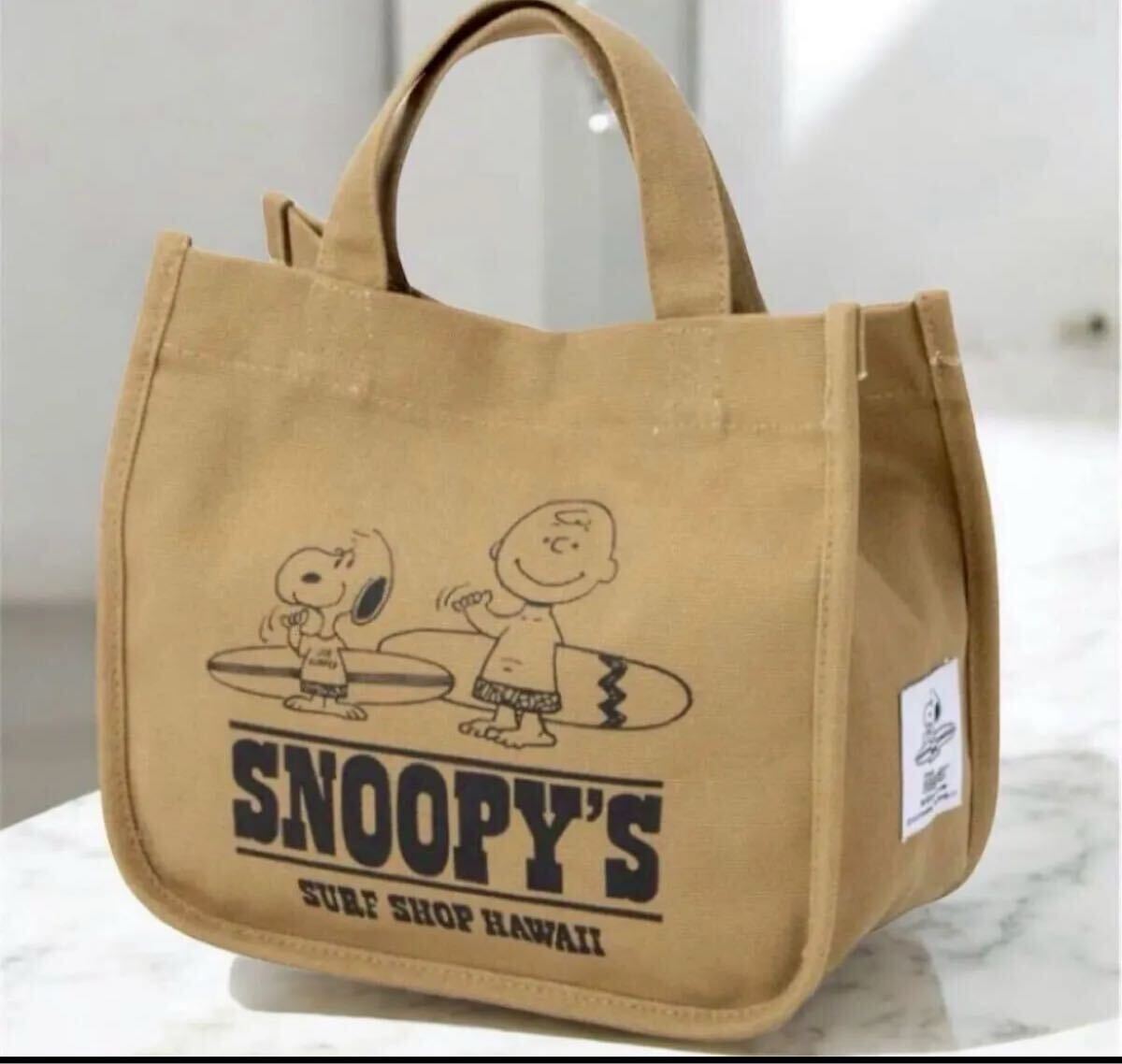 - 【新品未使用】スヌーピー サーフィン トートバッグ キャンバス地 茶