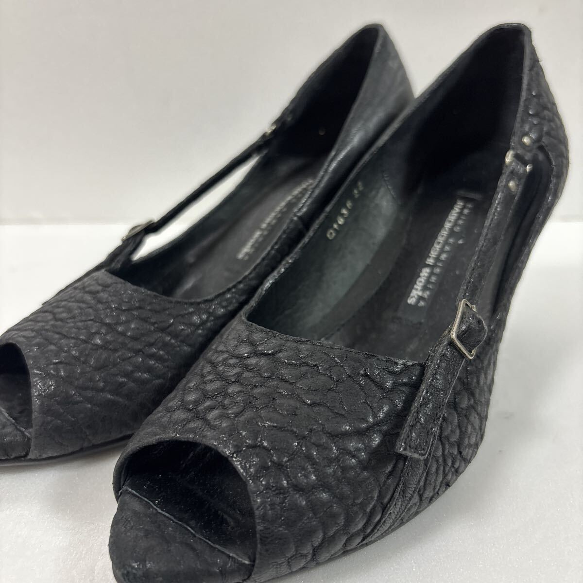- RABOKIGOSHI Works emiko kamishima ラボキゴシワークス レザーシワ加工 黒 パンプス 22㎝ ウェッジソール