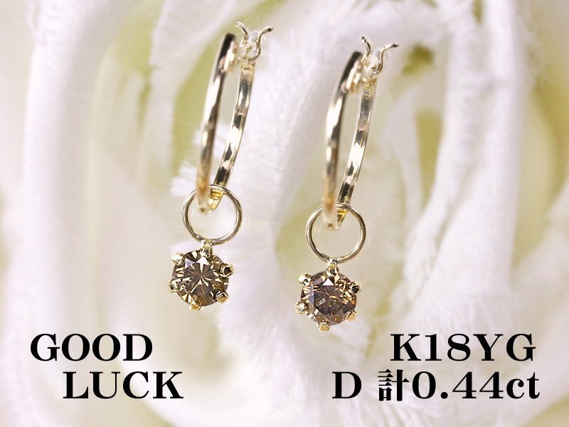 - 【新品・未使用】1円~最落無 天然ダイヤモンド 計0.44ct,K18YG 耳元で揺れながら煌めく 2WAY ダイヤモンド フープピアス (遮断式)