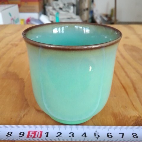 - 長崎県無形文化財 13代横石臥牛作 緑釉 湯飲 伝統工芸品