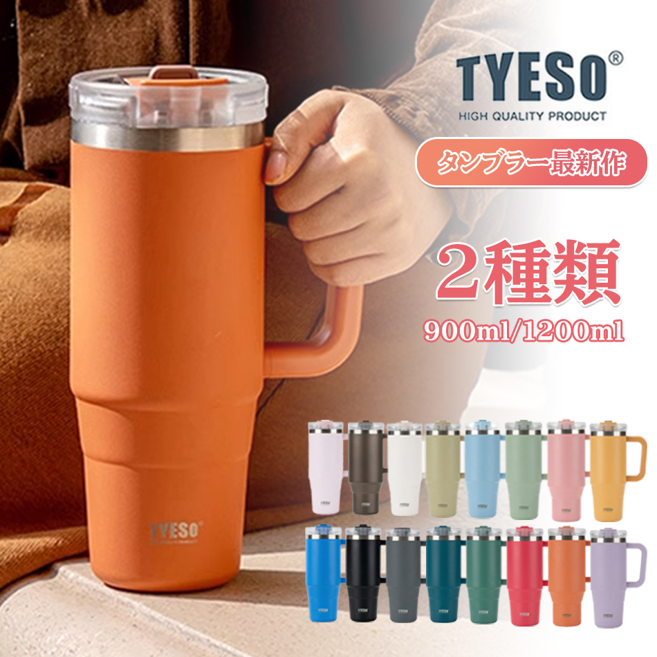 > 『落札後カラー提示×1200ml』TYESO タンブラー最新作◆ストロー付き 大容量 タンブラー 蓋付き 二重構造 真空断熱 保温 保冷 qs-159