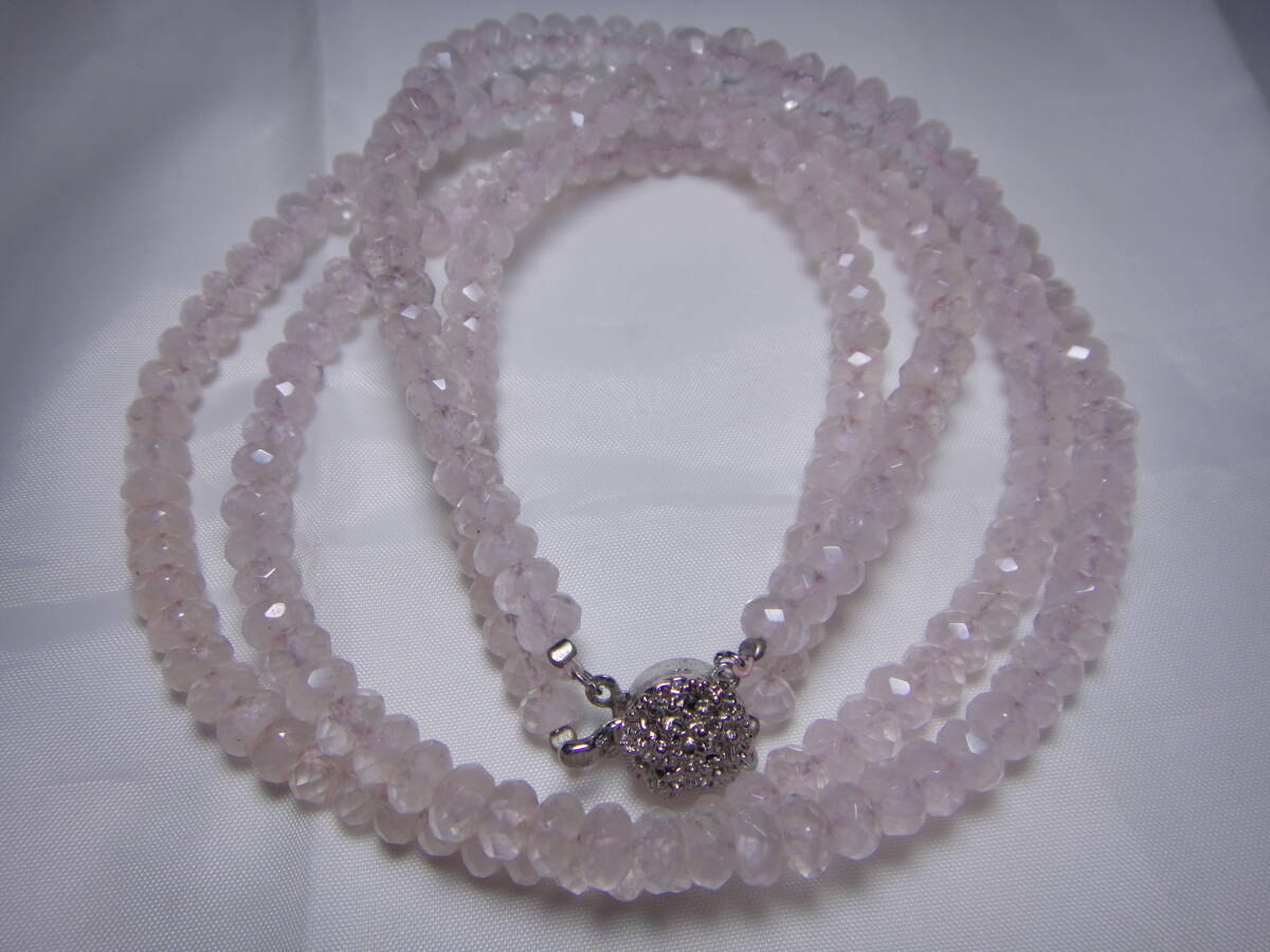 > 天然石 ローズクォーツ 2連ネックレス カットタンブル 約6㎜玉 全長約45㎝ レトロ ヴィンテージ C461