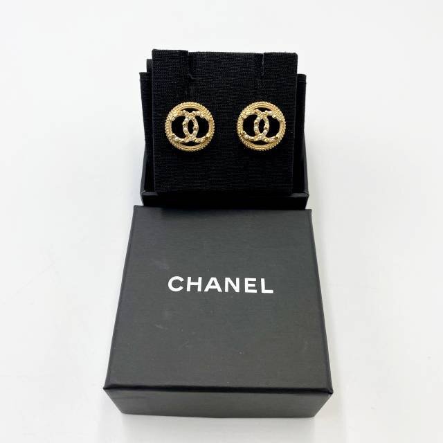 > CHANEL シャネル A18A ココマーク ピアス ブランド アクセサリー ゴールドカラー ラインストーン
