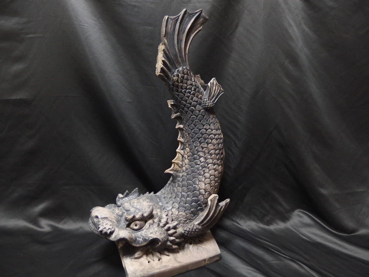 - 14)時代瓦 鯱 鯱鉾 在印 いい出来ですが破損有 現状品 H58㎝