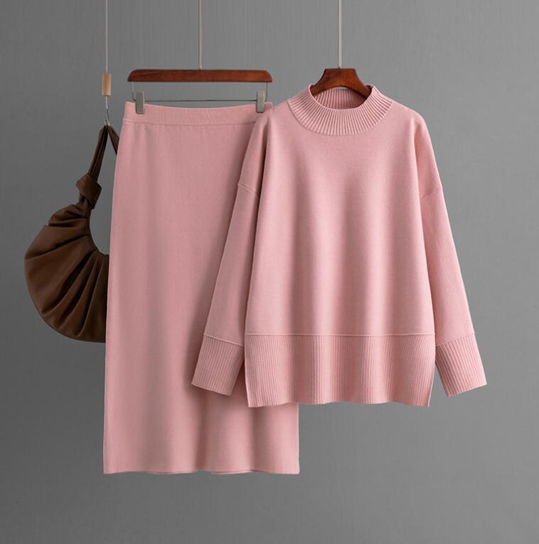- 346 スカートスーツladiesレディース ◇ 秋冬 上質 暖かい◇ ニット素材 2点セット pink