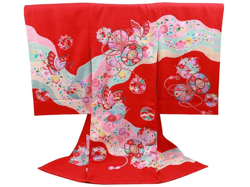 - ■女の子 産着■ お宮参り 着物 正絹 長襦袢 セット 女児 産着 祝着 金加工入り un-43(赤系) 【着物 子供 産着 祝い着 初着】