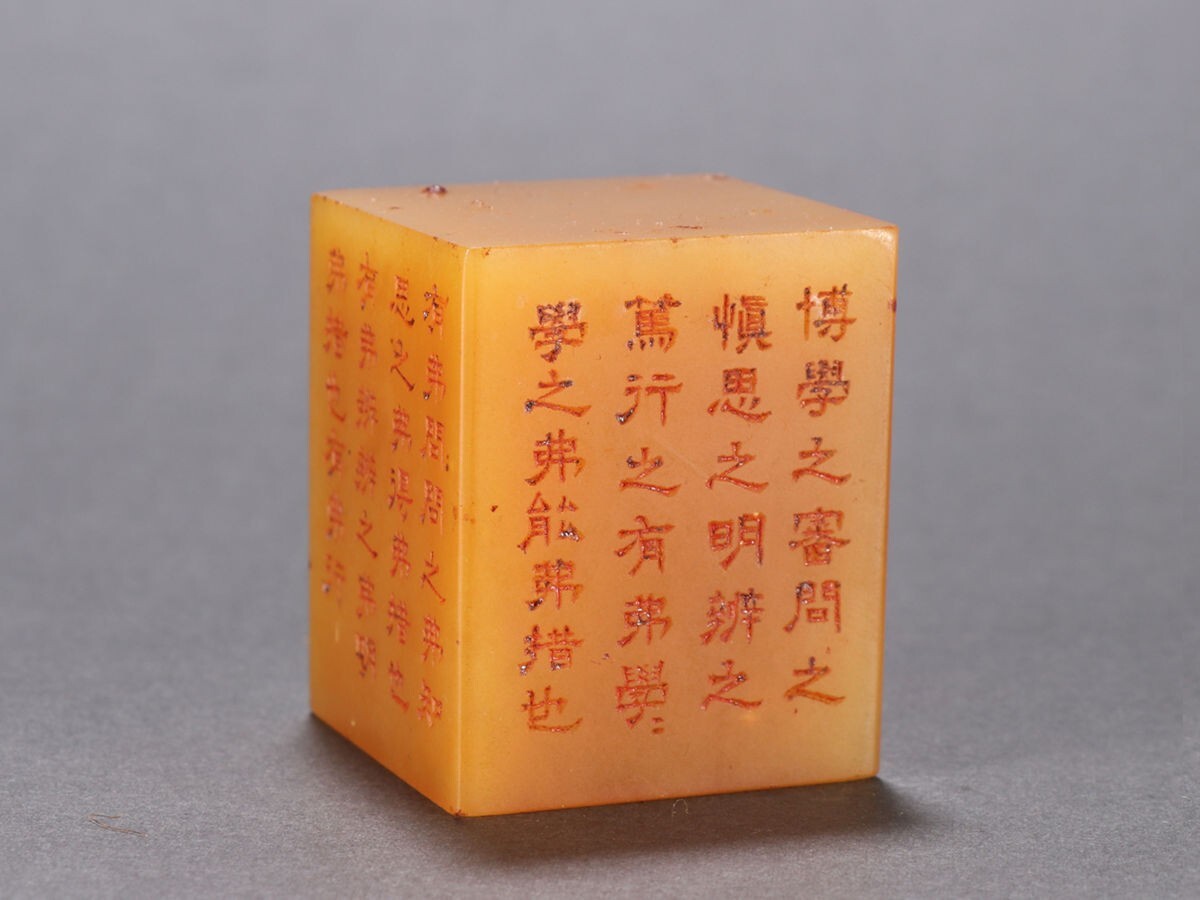 - 清代 正樸篆 老寿山石 田黄石彫 詩文印章 閑章【仁】極細工 手彫り 中国古賞物 古美術 蔵出