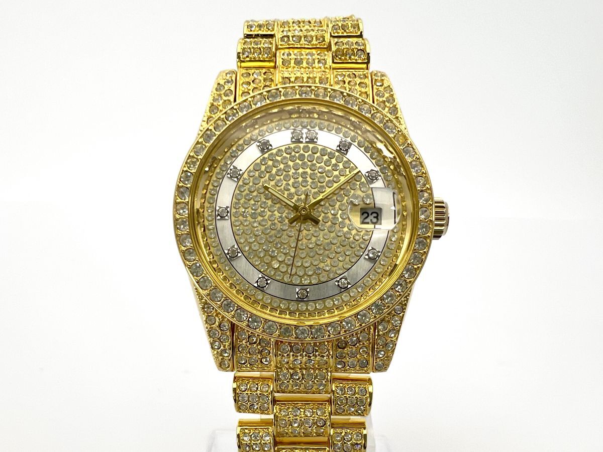 > ★【極美品・稼働品】ELGIN エルジン FK-907-C メンズ 腕時計 ゴールドカラー ラインストーン クォーツ★
