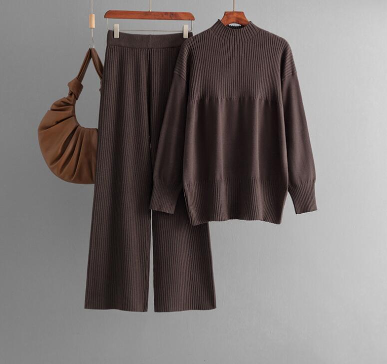- 346 パンツスーツladiesレディース ◇ ニット素材 上質 ◇ 厚手 秋冬 上下セット コーヒー