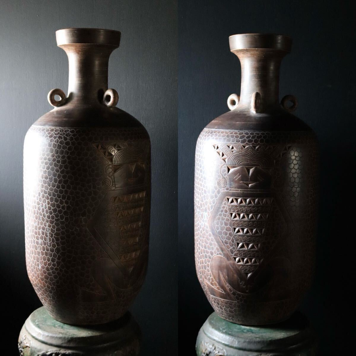 - インテリア モダン アンティーク 南米 ? 陶器 大型 壷 花瓶 オブジェ 置物 ビンテージ 水瓶 土器