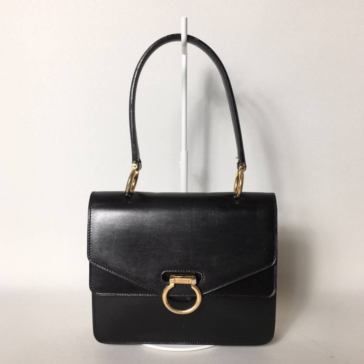 - 79B15|セリーヌ ハンドバッグ レザー ブラック ガンチーニ