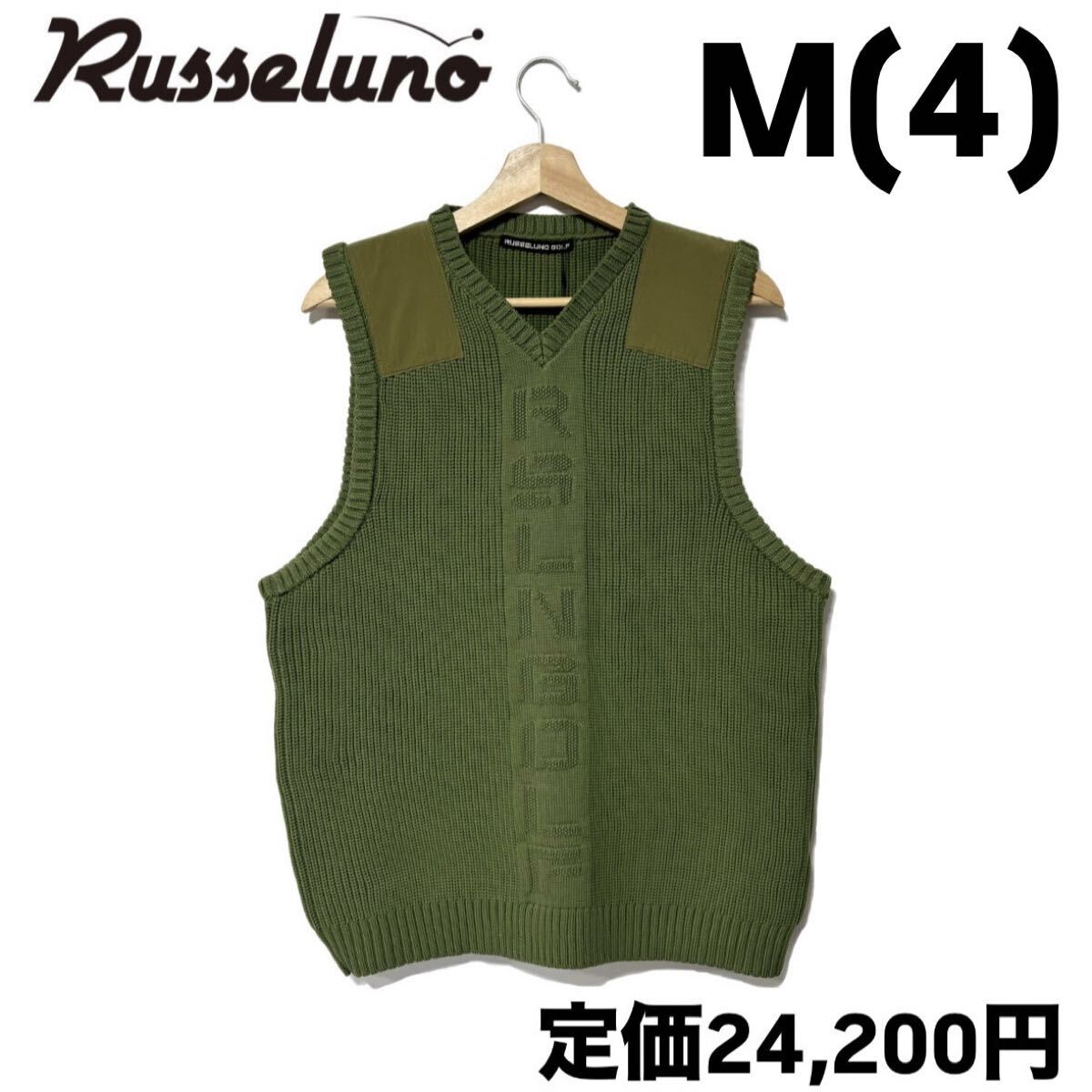 > 新品 ラッセルノ ゴルフ ロゴ刺繍 ニット ベスト カーキ M 4 ゴルフウェア ゴルフベスト RG-2330502