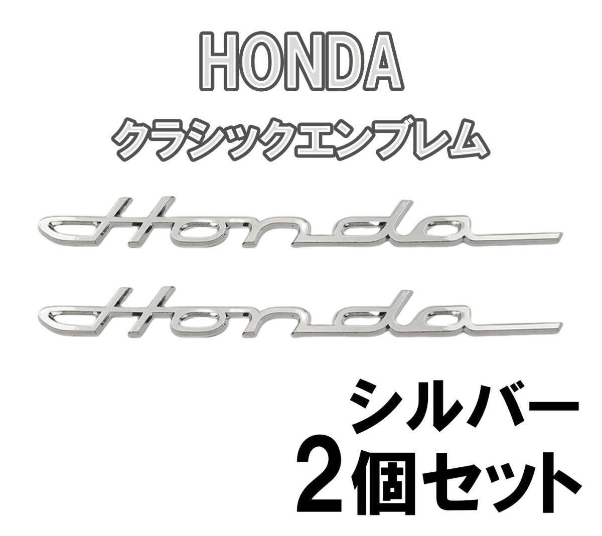 - ホンダ クラシック エンブレム メッキ シルバー 2個セット HONDA ステッカー アクセサリー パーツ デカール カスタム ロゴ レトロ バイク