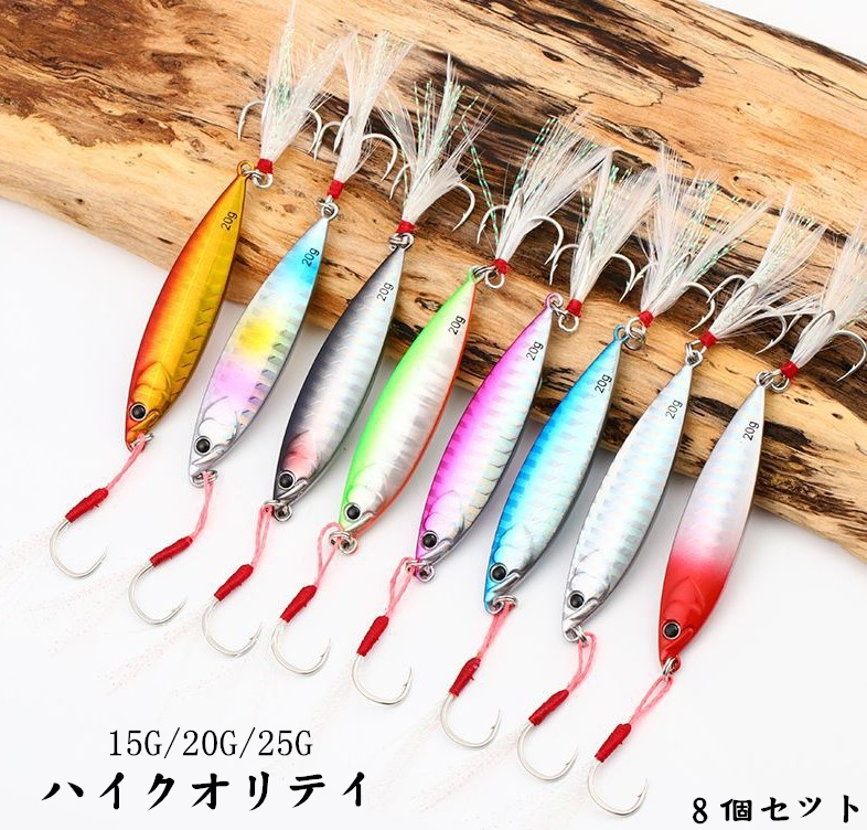 - 8個セット メタルジグルアー 15g 20g 25g アシストフック付き ルアーセット