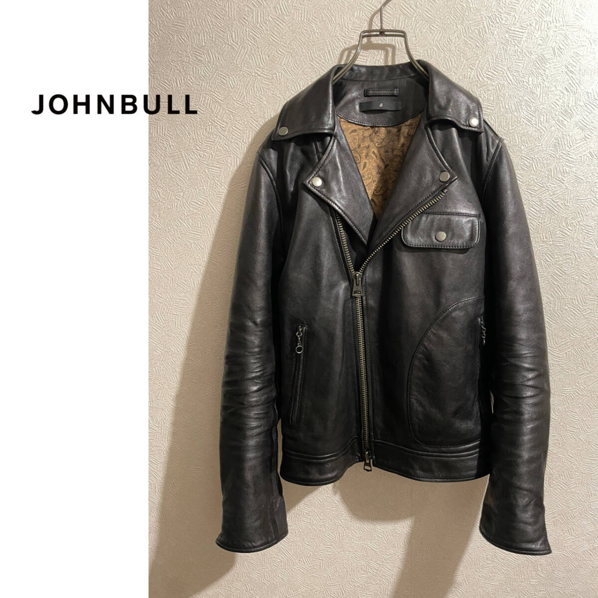 - ◯ JOHNBULL シープスキン ダブル ライダース ジャケット / ジョンブル レザー ペイズリー Dポケ ブラック 黒 M Mens #Sirchive