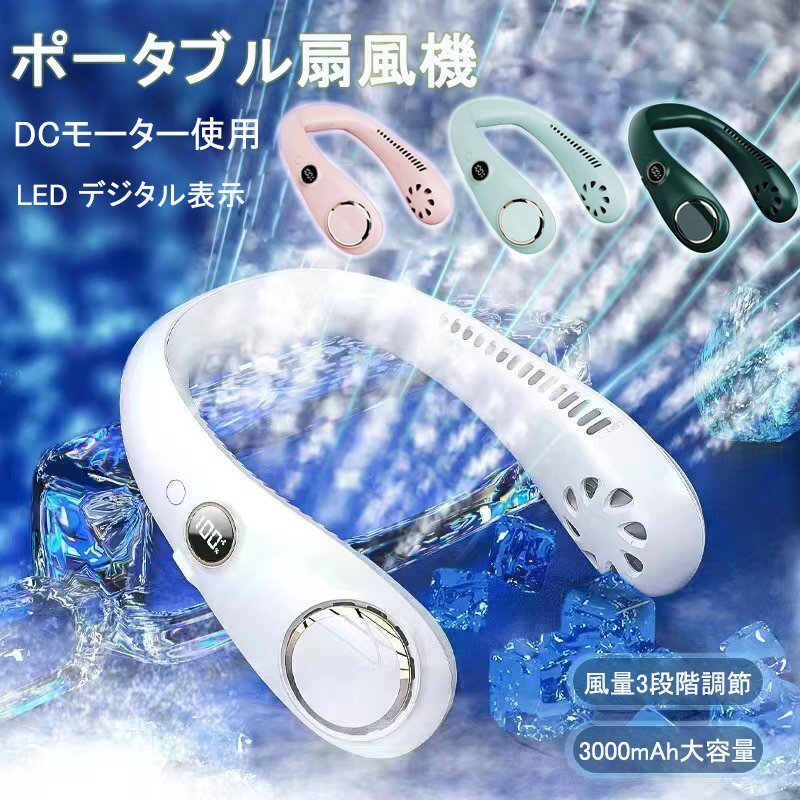 - 最新 DCモーター使用 騒音対策 ネッククーラー ネックファン fan ウェアラブル 携帯 ハンディ 首かけ扇風機