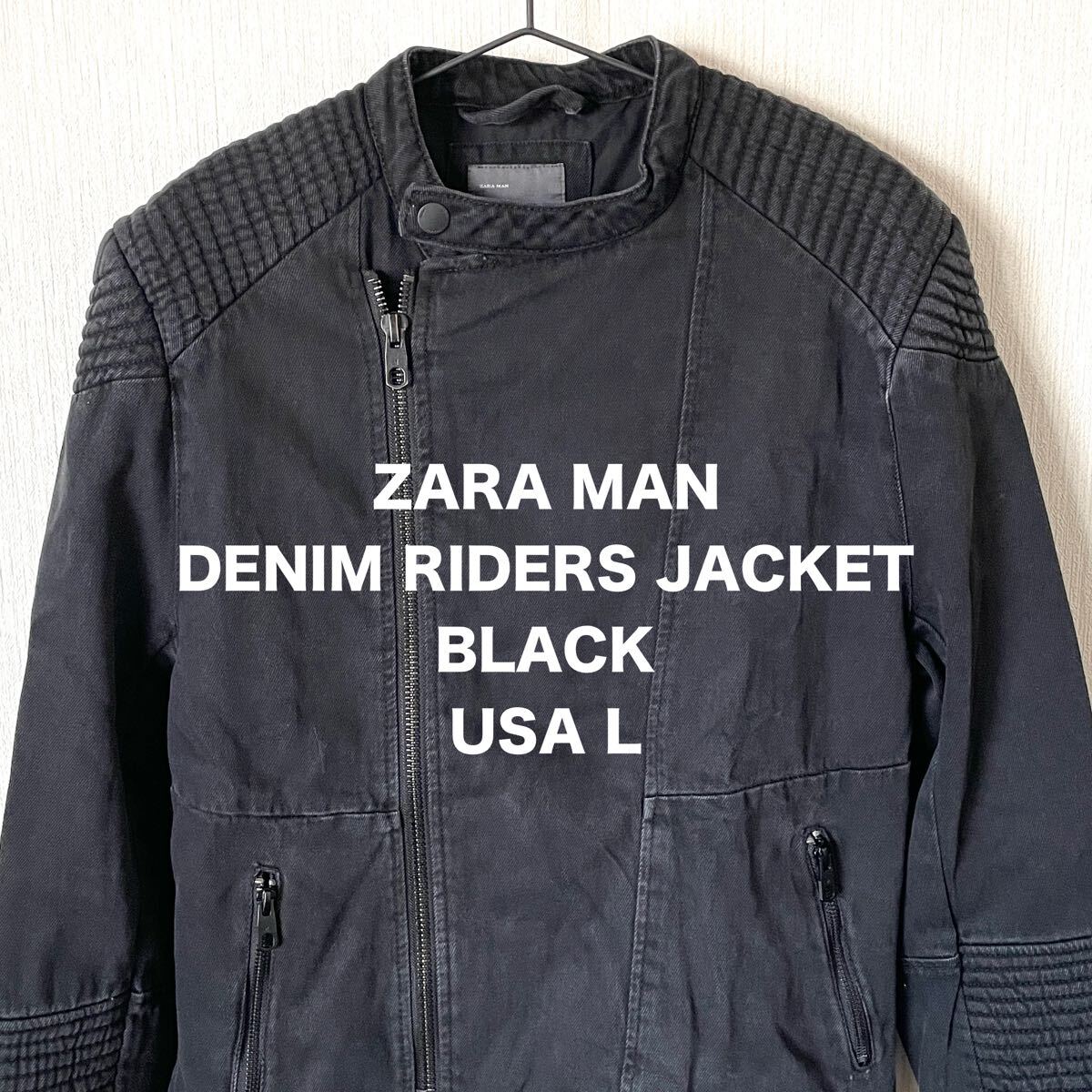 - 【ZARA MAN】ザラマン デニムライダースジャケット ブラック 黒 US L ロック カジュアル 匿名配送 メンズ アウター ブルゾン ジャンパー