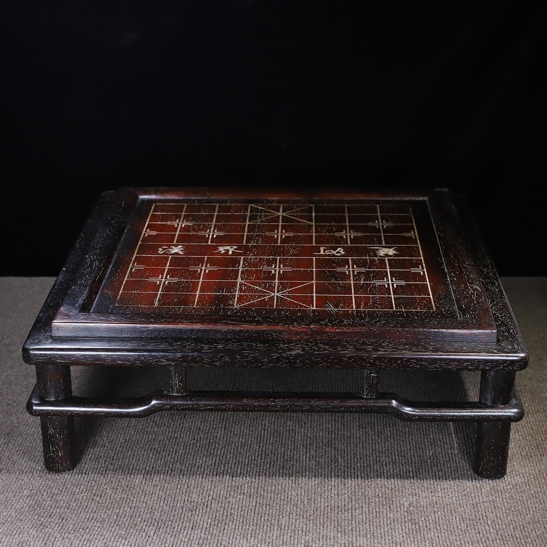 - 早期收集 古紫檀木彫 嵌貝殼 象棋 チェス 行く 方卓 卓子 古玩家具 時代物 骨董品 旧家蔵出し 唐物 中国古玩 古美術品