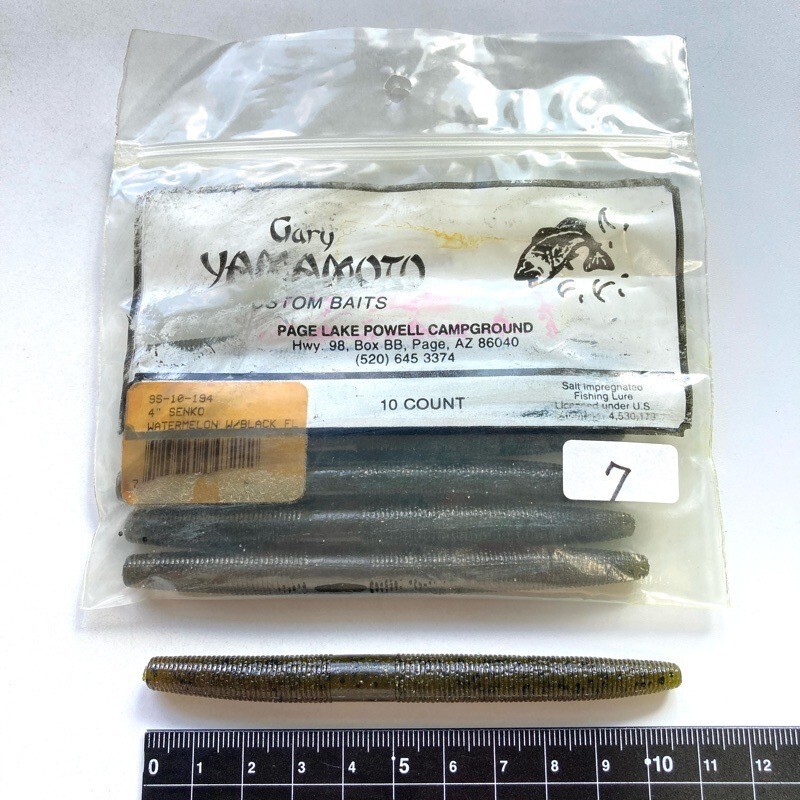 - 815187 ゲーリーヤマモト 4インチ ヤマセンコー 7本 GARY YAMAMOTO #194 ウォーターメロンペッパー オールド品