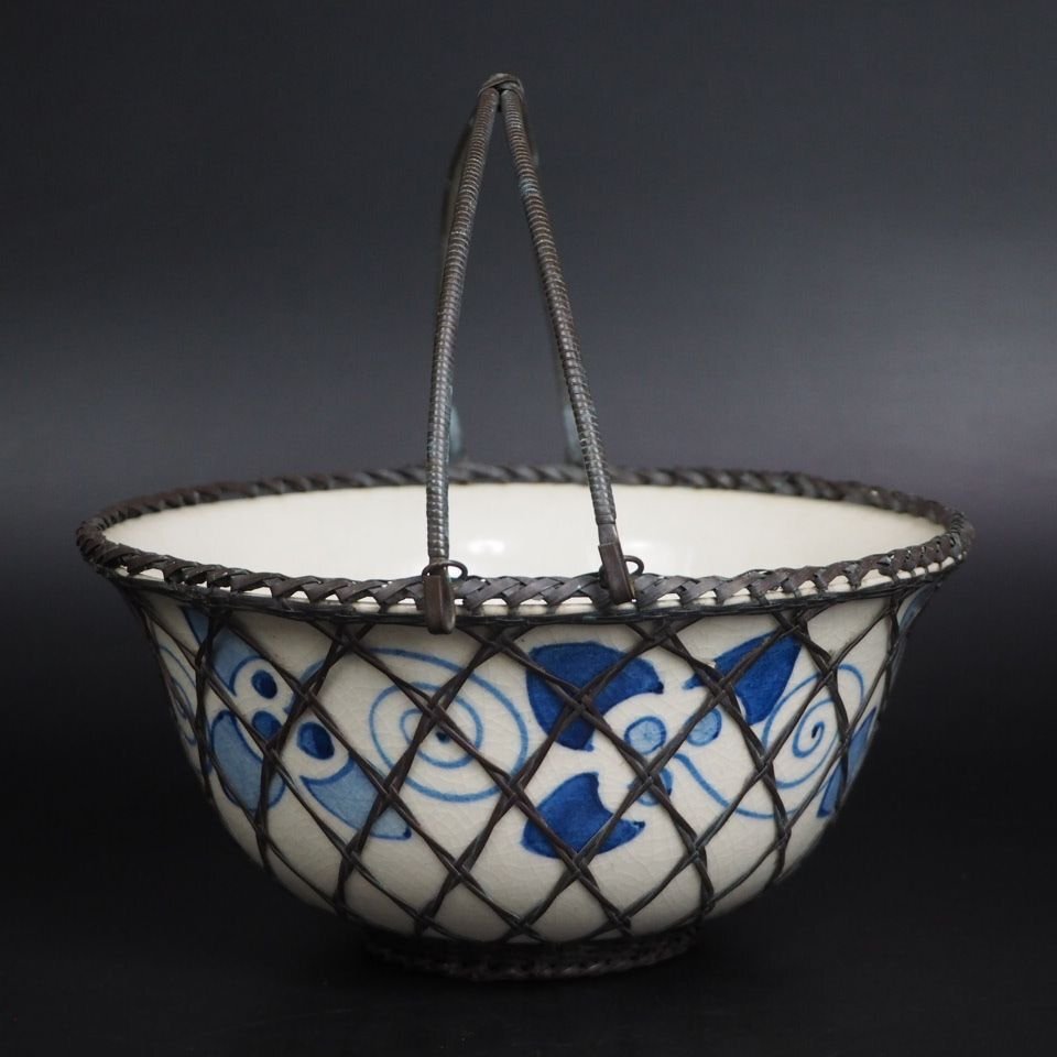 - 【金富士】値下げ中 明治時代 銅編み細工 菓子鉢 ★希少★ 検/銀瓶茶壺古錫玉川堂高岡佐渡銅器龍文堂亀文堂清中国古玩