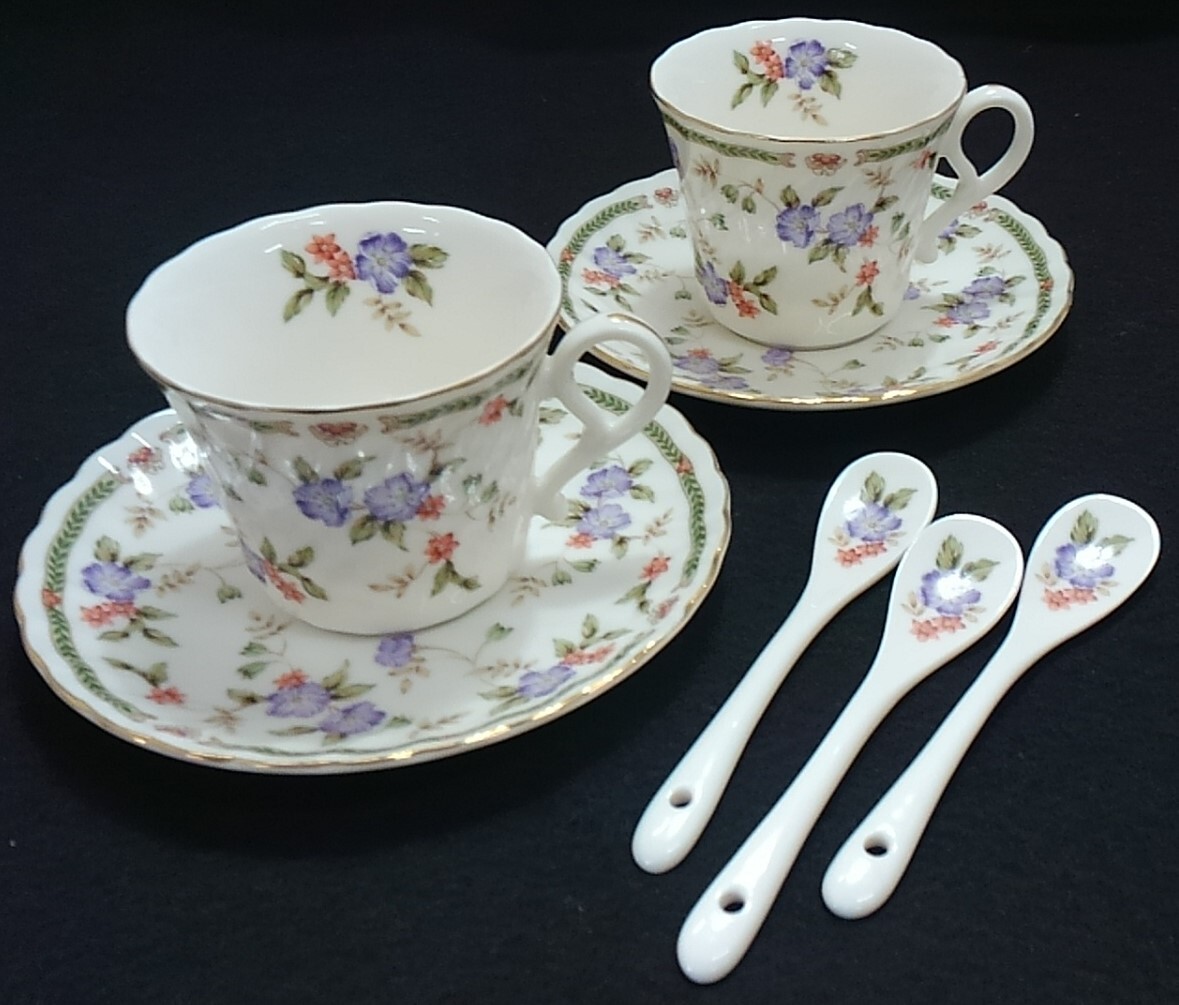 > 【菊水-552】■KEITO JAPAN EXCEED BON Violet■カップ&ソーサー2客&スプーン3点【計7点セット】■花柄(IS)