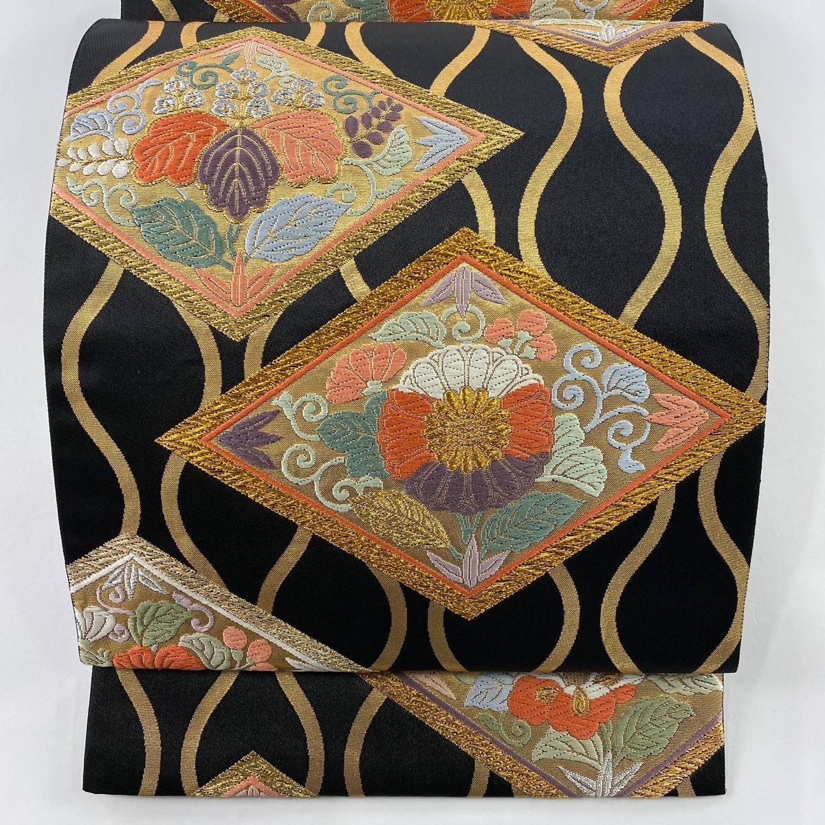 > 袋帯 秀品 桐 菊 唐織 金銀糸 黒 六通 正絹 【中古】
