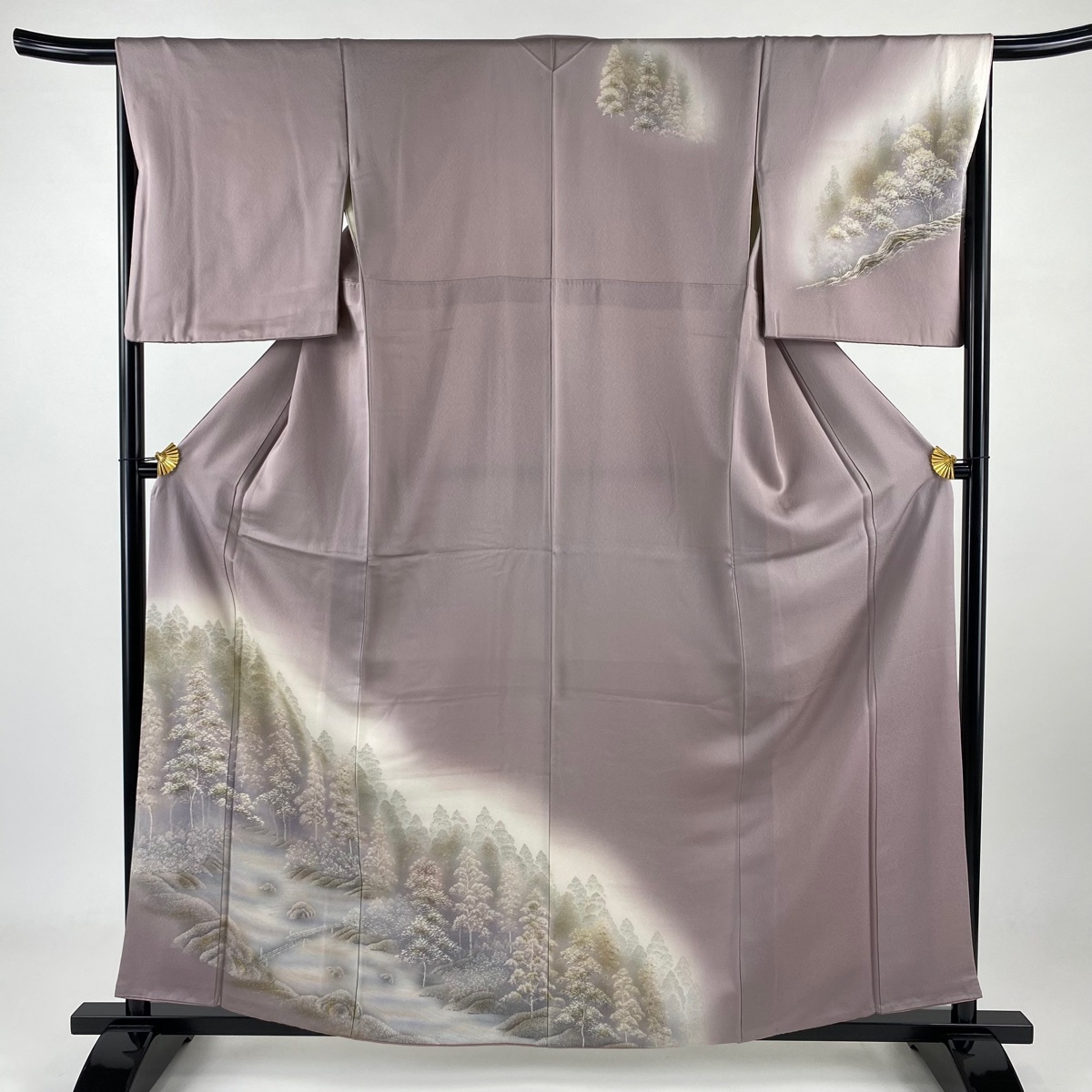 - 訪問着 身丈160cm 裄丈66.5cm M 袷 樹木 水辺の風景 金彩 ぼかし 薄紫 正絹 優品 【中古】