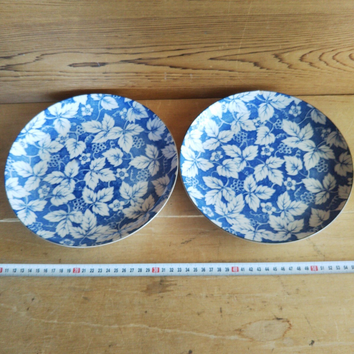 - 25092401 青い葉模様 葡萄柄 和食器 大皿 染付 飾り皿