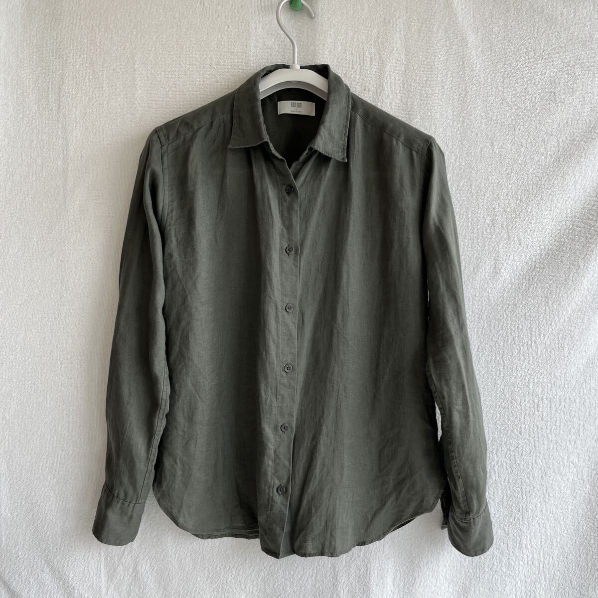 - UNIQLO ユニクロ レディース S 麻 長袖シャツ オリーブ カーキ