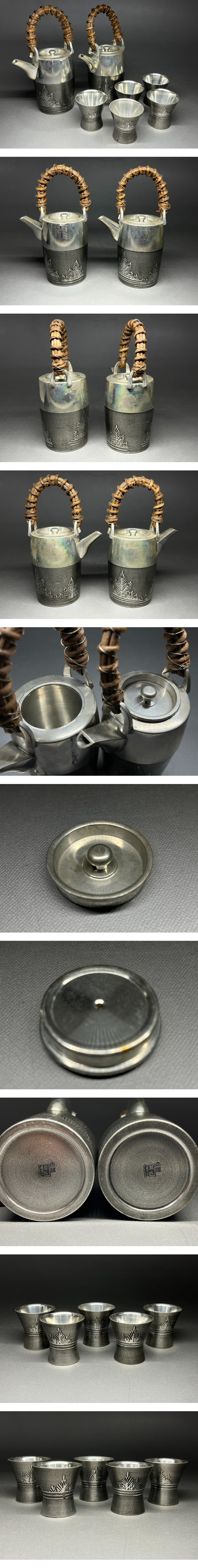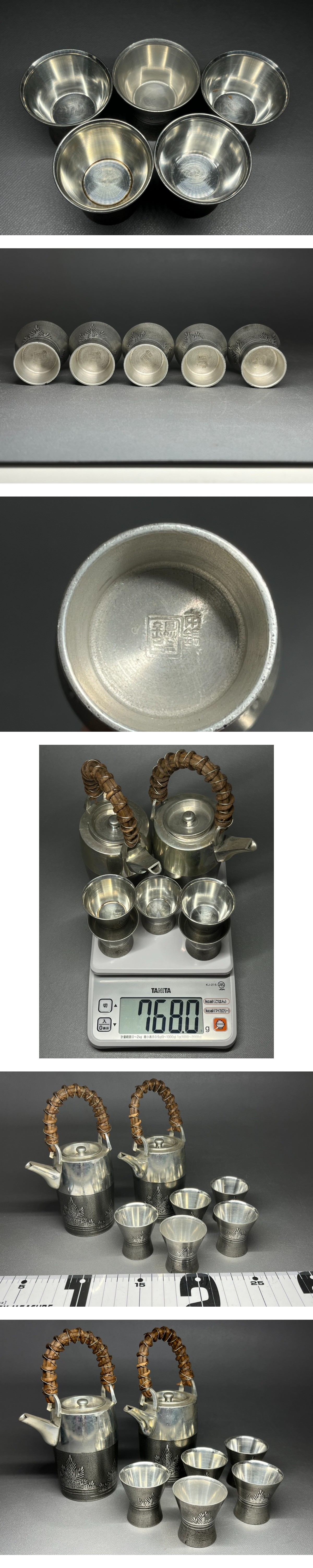 > 本錫 錫半 酒器揃い 重768.0g 酒盃 猪口 酒杯 おちょこ ぐい呑 ちろり 徳利 酒注 酒道具 金属工芸 骨董 置物 飾物 古美術